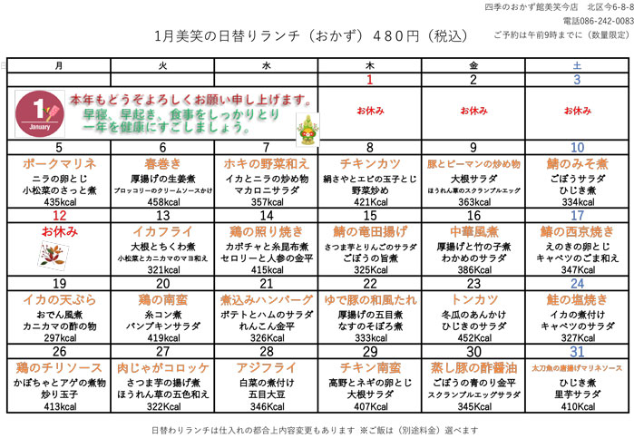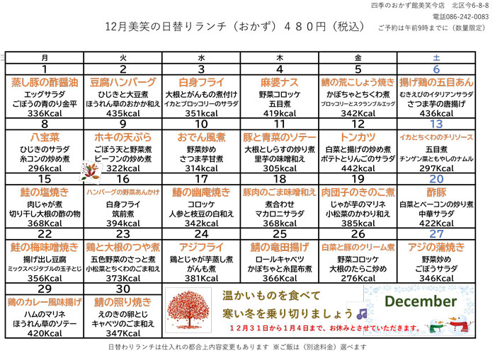 ※メニューは毎日変わります。本日のメニューは下部の表をご確認ください。